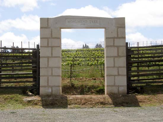 combination of well-drained sandy loam over clay loam. Monument Tree Vineyard was planted in 1999 to Dijon