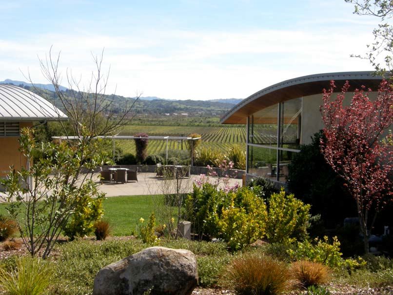 Westside Road in Healdsburg, a large, modern complex including a tasting room overlooking the Russian River
