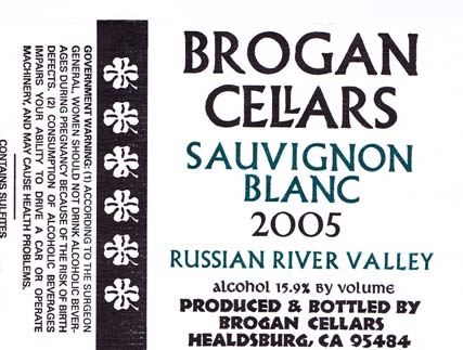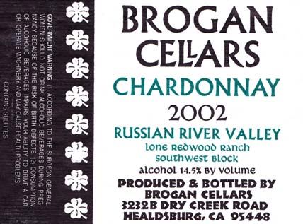 Valley Sauvignon Blanc and 2002 Brogan Cellars Lone Redwood Ranch Southwest Block Russian River Valley