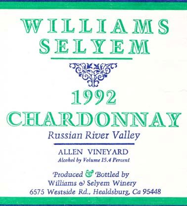 1992 Williams Selyem Allen Vineyard Russian River Valley Chardonnay Magnum