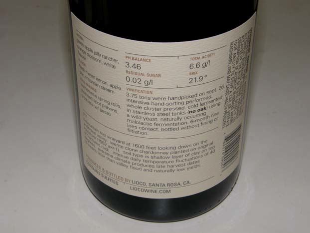 liked some oak on this fruit. Good (+). Note: I really like the back labels of