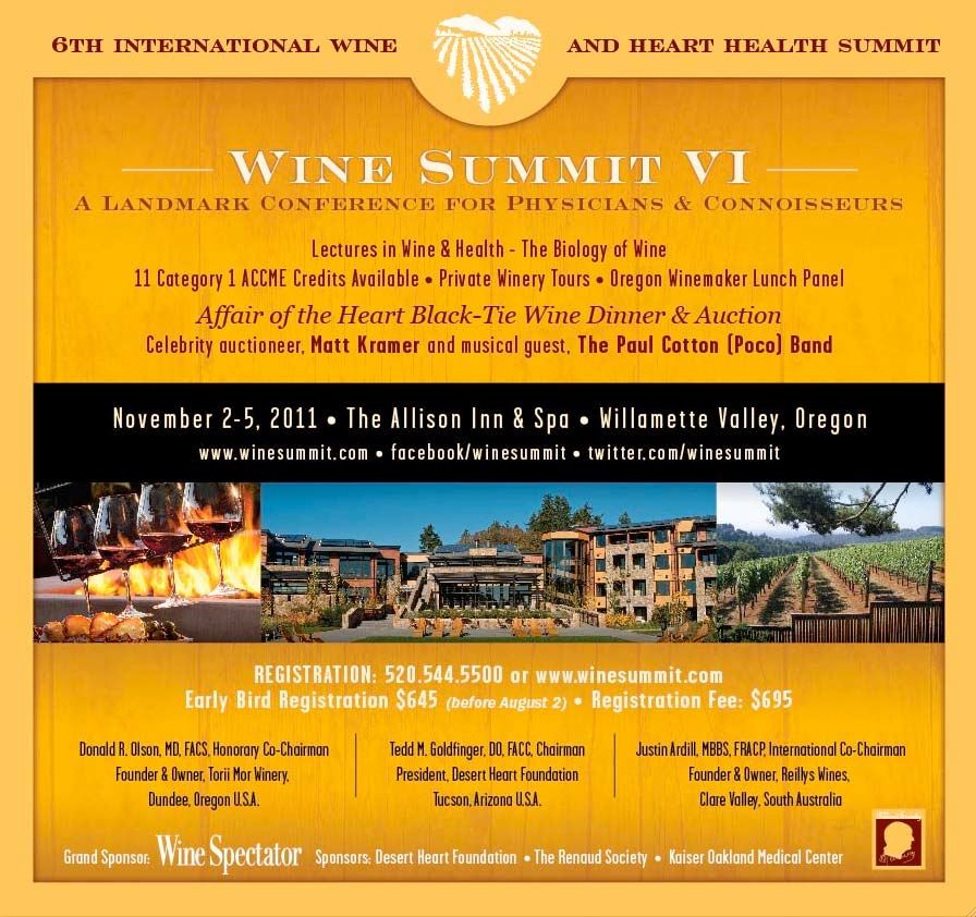 6th International Wine & Heart Health Summit This biannual event is being held in Oregon for