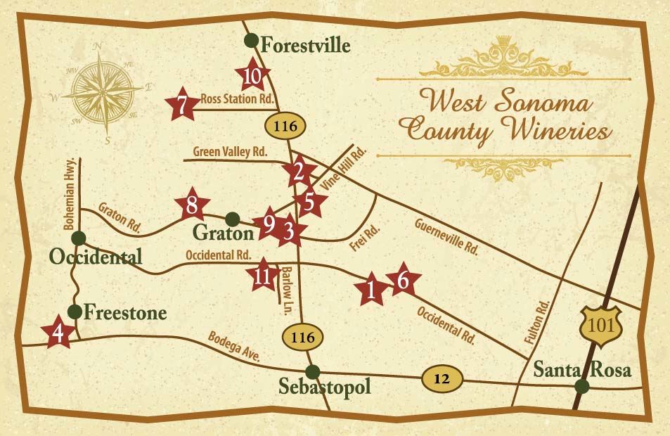 Ramey, Boheme, Ceritas, Evening Land, Benziger, Fort Ross, Small Vines, Benovia, Chasseur, Lioco and