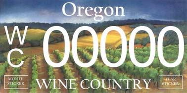 plates show a vineyard with the words, “Oregon Wine Country.” California, are you listening?