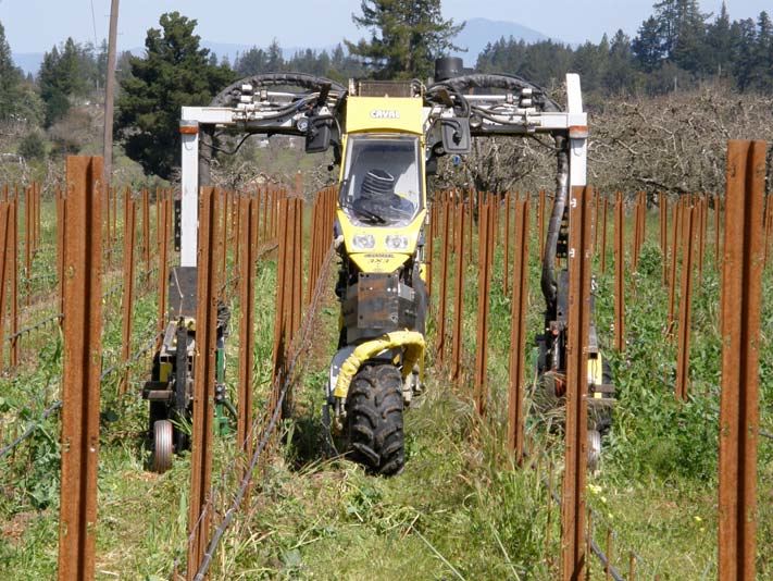 density plantings are from 2722 to 3630 vines per acre. Tractor rows are typically 4 feet wide (the California