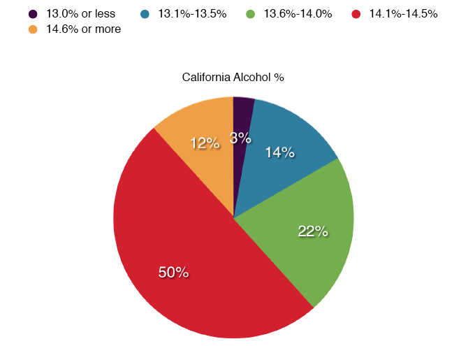 to 15.0 with 55% between 13.6 and 14.0 alcohol. The two charts below reflect this difference. Keep in mind that