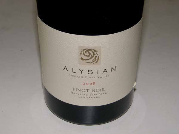 2008 Alysian Hallberg Crossroads Russian River Valley Pinot Noir 14.2% alc., 160 cases, $55.