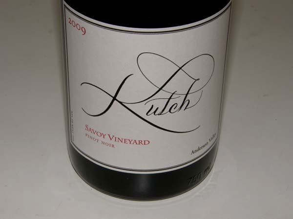 2009 Kutch Savoy Vineyard Anderson Valley Pinot Noir 13.8% alc., 264 cases, $48. Moderately dark