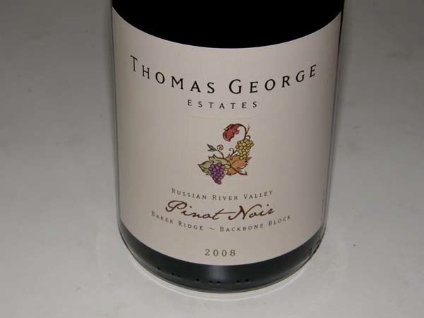 2008 Thomas George Estates Baker Ridge Backbone Block Russian River Valley Pinot Noir 14.5% alc.,