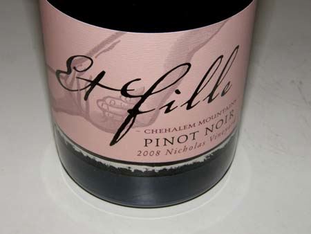 2008 Et Fille Nicholas Vineyard Chehalem Mountains Oregon Pinot Noir 13.7% alc., 172 cases, $34.