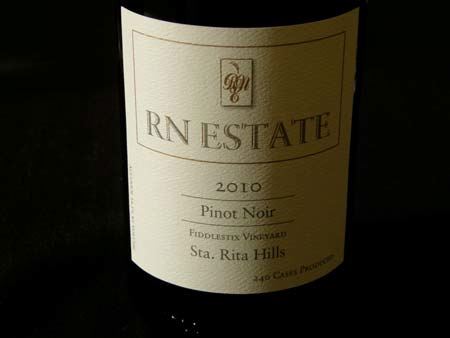 2010 RN Estate Fiddlestix Vineyard Sta. Rita Hills Pinot Noir 14.5% alc., 240 cases, unreleased. Very