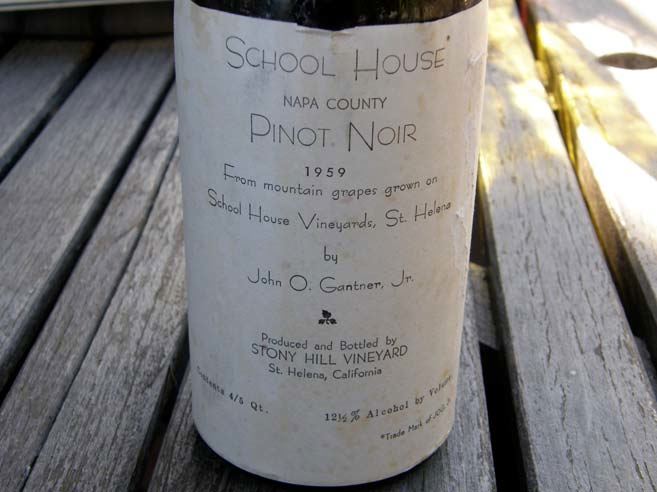 The School House Pinot Noir was vinified at Stony Hill from 1957 to 1959, at Buena Vista Sonoma from 1960