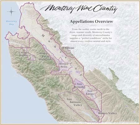 Pinot Noir thrives in the northern parts of Monterey County including the Carmel Valley, Chalone, Arroyo Seco