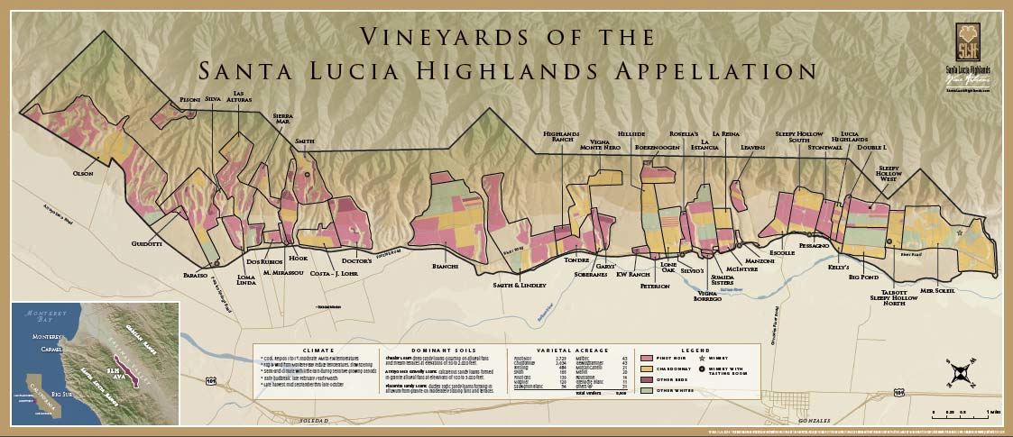 A vineyard map of the Santa Lucia Highlands is below. To view a larger image of this map, visit