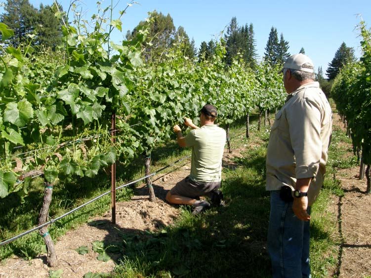 2010. The recent photo below shows Thomas Brown (leaf pulling) and Scott Zeller in the Summa Vineyard.