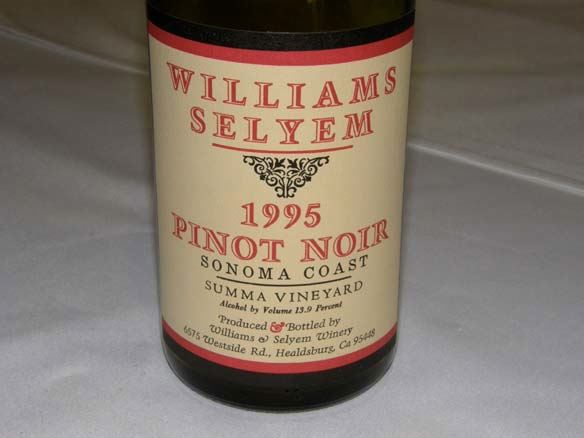 three days. This wine, along with the 1995 Williams Selyem Summa Vineyard Pinot Noir, were among the personal