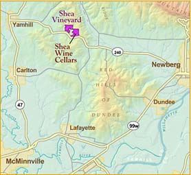 Dick Shea farms 136.5 acres of Pinot Noir and 3.5 acres of Chardonnay in the Yamhill-Carlton District. Grapes