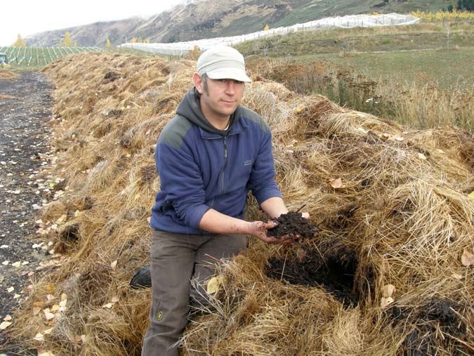 Pinot Noir, Nick’s first vintage as winemaker on his family’s vineyard. Nick is pictured below in his compost