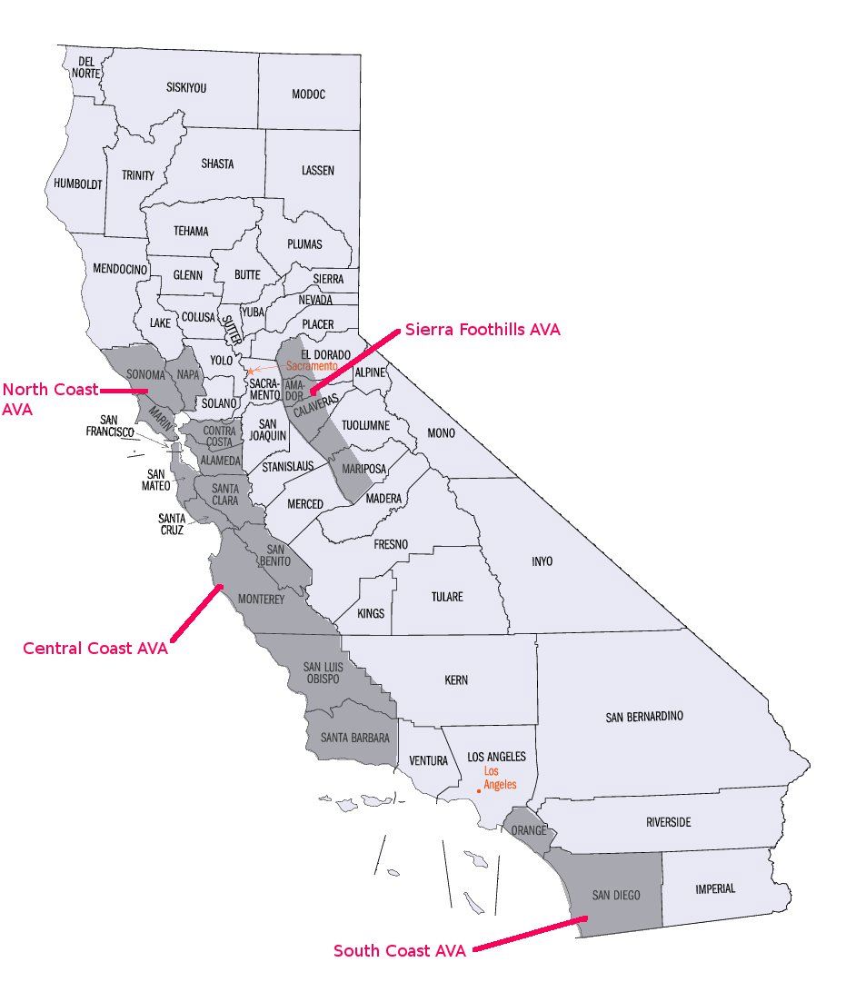 the San Francisco Bay to Santa Barbara County. It is the largest AVA in California, encompassing six counties,