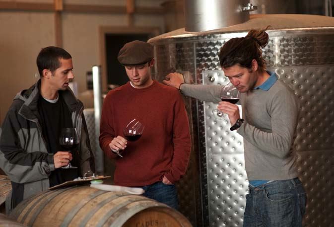 produced at the new Presqu’ile winemaking facility. Matt Murphy (cap), Jonathan Murphy (jacket) and Dieter