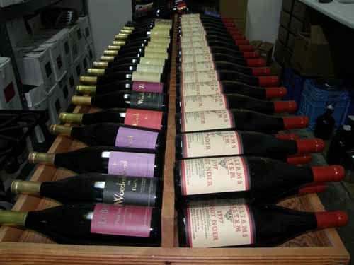 collection of Williams Selyem wines adjacent Woodenhead library wines.