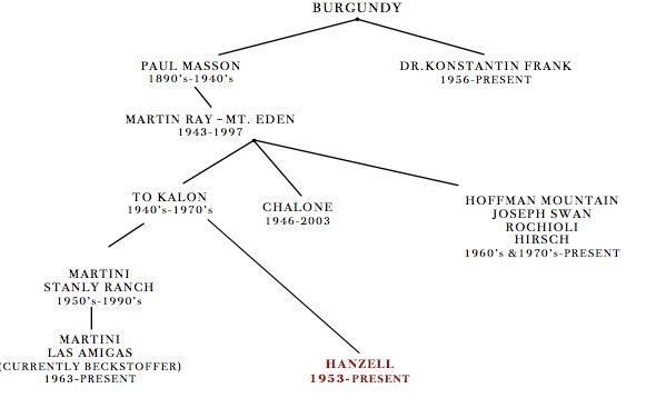Hanzell Vineyards in 1953 and it was Schoch who introduced the To Kalon Vineyard cuttings to Hanzell Vineyards.
