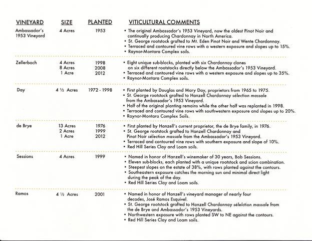 food compatibility, and above all, age ability. The wines speak of the unique terroir of the Hanzell hillside