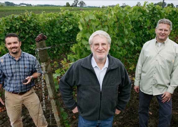 Chad Vargas has been the viticulturist and vineyard manager since 2006. David Adelsheim (center), David