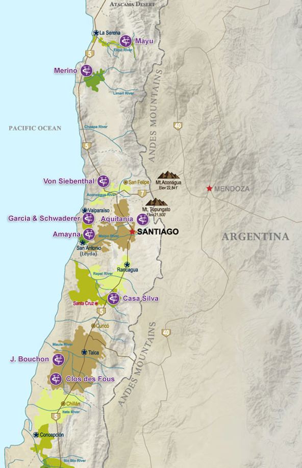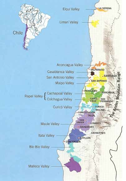 Chilean wine regions are organized by valleys as shown in the map below.