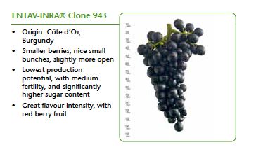 ENTAV-INRA® clone 943 originated in the Côte-d’Or and was introduced in 1989. There is very little published