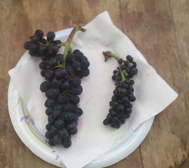 day from adjacent sections of Sierra Mar Vineyard in the Santa Lucia Highlands. Note the smaller berries, the