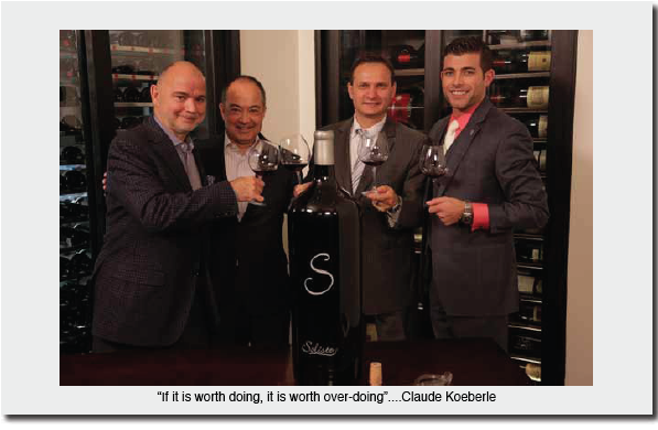 taken at the time of the first taste of the first bottle. Left to right, Claude, Don, Olivier Flosse, Wine & Beverage