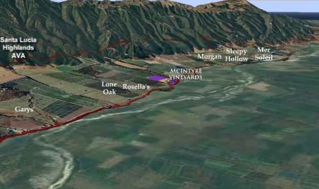 clone,” the oldest Pinot Noir planting in the Santa Lucia Highlands, along with 10 acres of 115, 777 and Swan