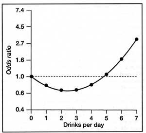 suggested with a lowered risk on average intake of about 1 to 1.5 standard drinks in comparison with nondrinkers