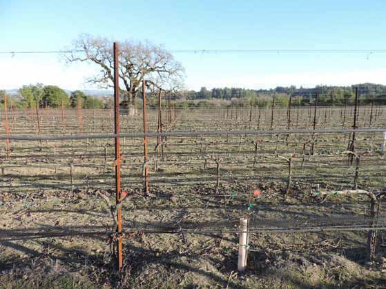 planted in 5’ x 7’ rows at 1,245 vines per acre and trained to a VSP trellis.