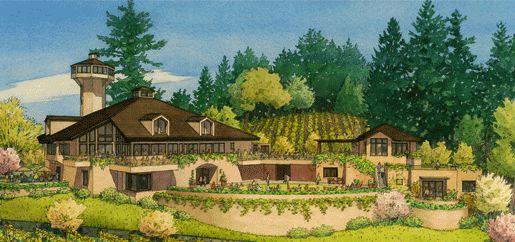 expansive patio surrounded by 12 acres of estate vineyards newly planted to Pinot Noir and Chardonnay. In