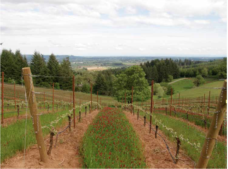southwestern corner of the Yamhill-Carlton District. The vineyard contains both sedimentary (65%) and Jory