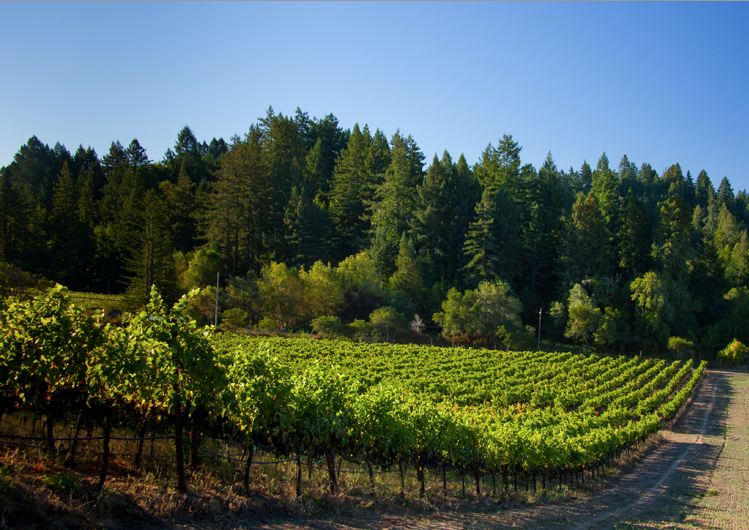 - The vineyard is on the second ridge, a few miles inland from the Pacific Ocean, offering early bud break,