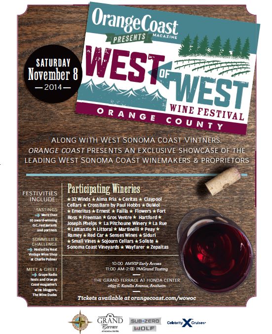 For tickets, visit www.orangecoast.com/wowoc. PinotFile readers use code WOWFRFAM for a $99 discount on tickets.