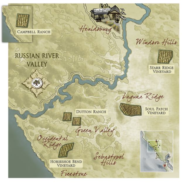 $55. This vineyard is the coolest and most coastal of the four Russian River Valley vineyard designated Pinot