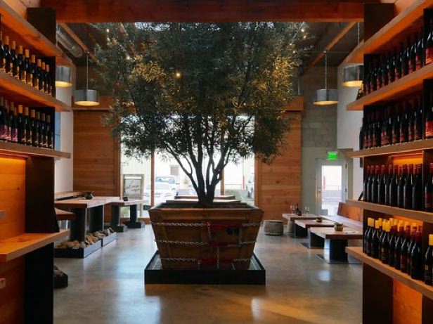 olive tree with a skylight overhead that floods the room with natural light. The Tasting Room at 181-C Industrial