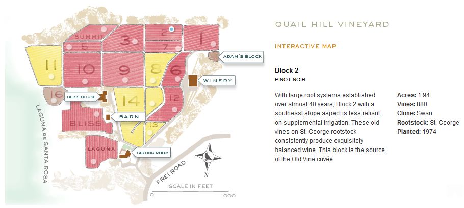 The Quail Hill Estate Vineyard Block 2 was first planted in 1974 (the Lynmar website says 1971 but the