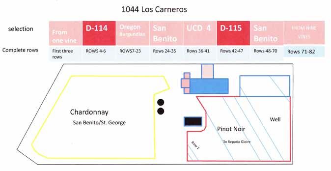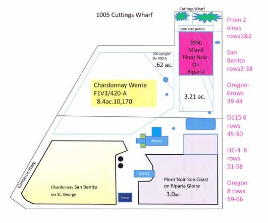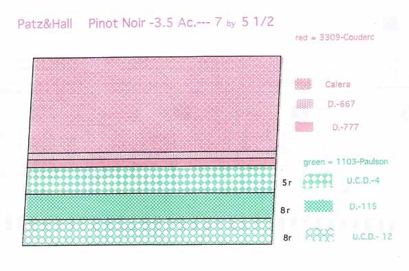 the acre. Here is a map of the Hyde Vineyard showing the Pinot Noir planted:
