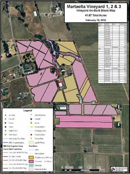 2200 and 2722 vines per acre. A map of Martaella Vineyard and its three parcels is below.