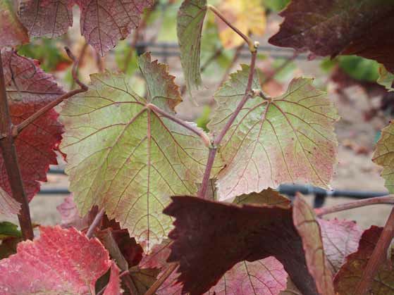 first leaf as well as mature vineyards. The virus has also been found in table grapes.