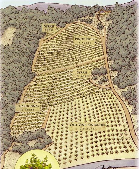 the original Zinfandel vines, and planted 7 acres of Pinot Noir along with small amounts of Syrah and