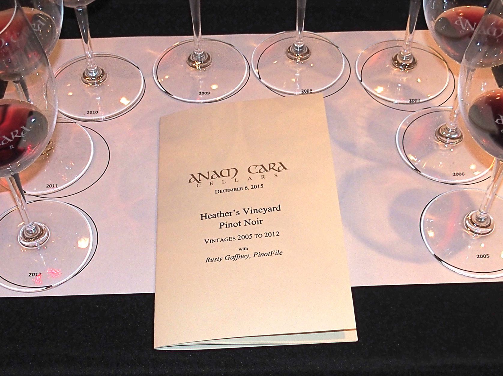 was that I had journeyed to Oregon for a special vertical tasting of Anam Cara Cellars Heather’s Vineyard Pinot