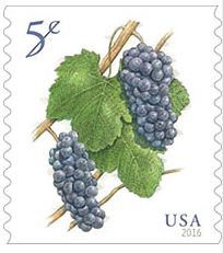 stamp on February 19, 2016, that depicts a cluster of Pinot Noir stamps based on original pen and ink and