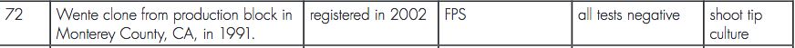 that were registered at FPS in 1973, and heat-treated clone 108 which preceded the release of Wente clones
