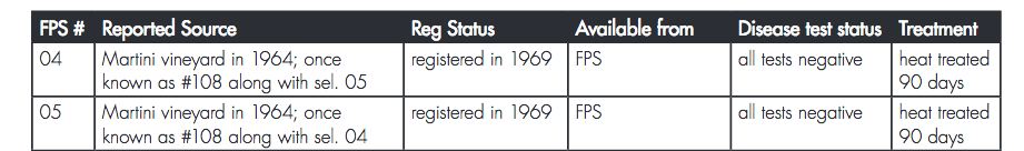04 and 05. Clone 108, also known as the “Davis” or “Wente” clone was first released in 1967 by the University